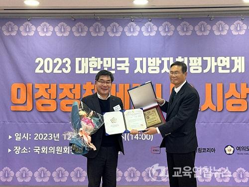 ¡¼¹«¾È=±³À°¿¬ÇÕ´º½º¡½¹Ú»ó¿õ ±âÀÚ=Àü¶ó³²µµÀÇȸ ¹ÚÁ¾¿ø ±³À° ÀÇ¿ø(´õºÒ¾î¹ÎÁÖ´ç, ´ã¾ç1)Àº Áö³ 12¿ù 22ÀÏ ±¹È¸ÀÇ¿øÈ¸°ü¿¡¼ ¿©ÀǵµÁ¤Ã¥¿¬±¸¿ø ÁÖ°üÀ¸·Î ¿¸° ¡®2023 ´ëÇѹα¹ Áö¹æÀÚÄ¡Æò°¡¿¬°è ÀÇÁ¤Á¤Ã¥´ë»ó'¿¡¼ ´ë»óÀ» ¼ö»óÇß´Ù.