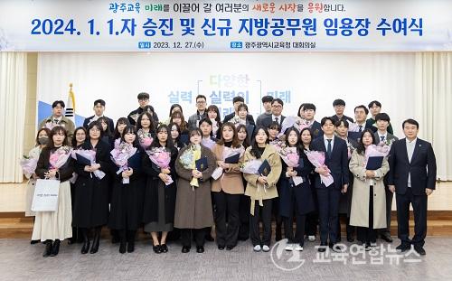 ¡¼±¤ÁÖ=±³À°¿¬ÇÕ´º½º¡½ÀÌ¿µÁö±âÀÚ= ±¤Áֽñ³À°Ã»ÀÌ 27ÀÏ º»Ã» ´ëȸÀǽǿ¡¼ 4, 5±Þ ½ÂÁøÀÚ 15¸í°ú °øÁ÷¿¡ ù¹ßÀ» ³»µó´Â ½Å±Ô °ø¹«¿ø 41¸í¿¡°Ô ÀÓ¿ëÀåÀ» ¼ö¿©Çß´Ù.