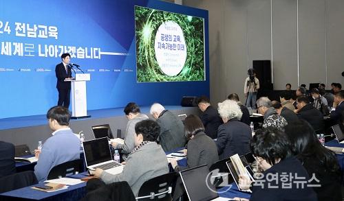 ¡¼¿©¼ö=±³À°¿¬ÇÕ´º½º¡½¹Ú»ó¿õ ±âÀÚ= Àü¶ó³²µµ±³À°Ã»Àº 4ÀÏ ¿ÀÀü ¿©¼ö¼¼°è¹Ú¶÷ȸÀå¿¡¼ '2024³â Àü³²±³À°Àº Áö¿ª°ú ÇÔ²² ¼¼°è·Î ³ª°¡°Ú½À´Ï´Ù'¶ó´Â ÁÖÁ¦·Î ±è´ëÁß ±³À°°¨ÀÇ ½Å³â ±âÀÚȸ°ßÀ» °®°í, 2024³â ÁÖ¿ä Á¤Ã¥ ÃßÁø°èȹÀ» ¹ßÇ¥Çß´Ù.