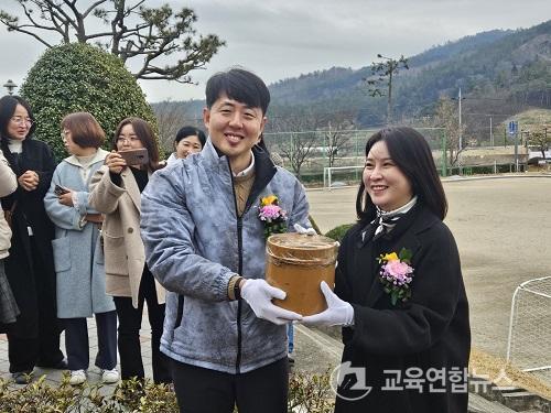 1ȸ Á¹¾÷»ý ´ëÇ¥·Î Âü¿©ÇÑ ±è°æ¹ü, ¹Î¼¼Á¤¾¾´Â ÁßÇб³ ½ÃÀý Ãß¾ïÀÌ °¡µæÇÑ ¸ð±³¸¦ µÑ·¯º» µÚ, º»°ü ¾Õ¶ã¿¡ ¹¯¾îµÐ ²Þ´ÜÁö Ç¥½Ä ¾Õ¿¡ ¼¹´Ù. °ðÀÌ¾î ¶¥À» ÆÄ, 20³â Àü ¼³·½À» ´ã¾Æ ¹¯¾îµÐ ²Þ´ÜÁö°¡ ±× ¸ð½ÀÀ» µå·¯³»ÀÚ Çлý°ú °¡Á·µéÀÌ È¯È£¼ºÀ» Áö¸£¸ç ¹Ý°å´Ù. Å×ÀÌÇÁ·Î ¹ÐºÀµÅ ÀÖ´ø ²Þ´ÜÁö ¾È¿¡´Â ±×ÇØ Á¹¾÷»ý 5¸íÀÌ ²Ú²Ú ´·¯¾´ ¡®20³â ÈÄ ³ªÀÇ ¸ð½À¡¯ÀÌ °í½º¶õÈ÷ ´ã°Ü ÀÖ¾ú´Ù.
