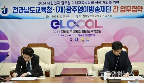 ¡¼¹«¾È=±³À°¿¬ÇÕ´º½º¡½¹Ú»ó¿õ ±âÀÚ= Àü¶ó³²µµ±³À°Ã»(±³À°°¨ ±è´ëÁß)°ú (Àç)±¤ÁÖ¿µ¾î¹æ¼Û(»çÀå ±èÈÖ)ÀÌ 20ÀÏ Àü¶ó³²µµ±³À°Ã»¿¡¼­ ¡®2024 ´ëÇѹα¹ ±Û·ÎÄà ¹Ì·¡±³À° ¹Ú¶÷ȸ¡¯ ¼º°ø °³ÃÖ¸¦ À§ÇÑ ¾÷¹«Çù¾àÀ» ü°áÇß´Ù.