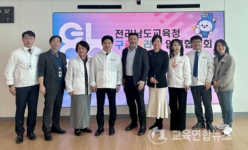 28ÀÏ Ã»»ç ±³À°°¨½Ç¿¡¼­¡®Àü¶ó³²µµ±³À°Ã»-±¸±ÛÄÚ¸®¾Æ ¾÷¹«ÇùÀÇȸ¡¯¸¦ ¸¶Ä£ µÚ ±è´ëÁß ±³À°°¨(¿ÞÂÊ ³× ¹øÂ°)°ú Äݸ° ¸¶½¼ µð·ºÅÍ(¿ÞÂÊ ´Ù¼¸ ¹øÂ°) µî °ü°èÀÚµéÀÌ ±â³ä ÃÔ¿µÀ» Çϰí ÀÖ´Ù.