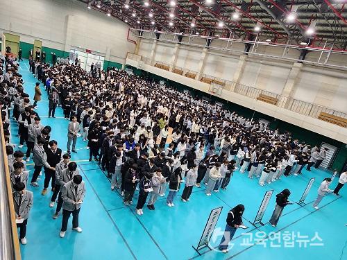 ¼Û¿ø°íµîÇб³(201¸í), ¼Û¿ø¿©ÀÚ°íµîÇб³(200¸í), ¼Û¿ø¿©ÀÚ»ó¾÷°íµîÇб³(126¸í), ±¤ÁÖ¼Û¿øÁßÇб³(182¸í) ½ÅÀÔ»ý ÃÑ 709¸íÀÇ ½ÅÀÔ»ýµéÀÇ ÀÔÇÐ½Ä Àå¸é