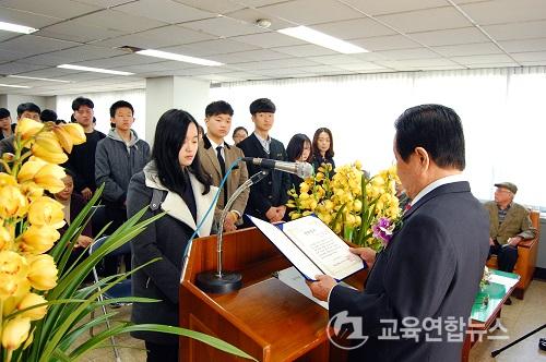 À̳¯ ¿¸° ÀåÇÐÁõ¼ ¼ö¿©½Ä¿¡´Â ±¤ÁÖ±ÝÈ£°í ½ÅÇüŹ ±º µî °íµîÇлý 28¸í°ú ÀÌÈ¿©´ë ºÒ¹®°ú 2Çг⠹ÚÇö¼± ¾ç µî ´ëÇлý 21¸í µî ¸ðµÎ 49¸í¿¡°Ô °íµîÇлýÀº 100¸¸¿ø, ´ëÇлýÀº 200¸¸¿øÀÇ ÀåÇбÝÀ» Àü´ÞÇß´Ù.