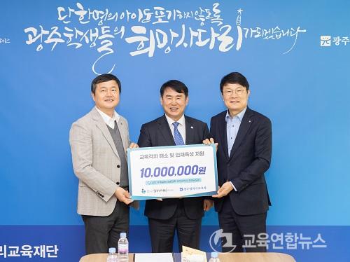 ¡¼±¤ÁÖ=±³À°¿¬ÇÕ´º½º¡½¹Ú»ó¿õ ±âÀÚ= ±¤ÁÖÈñ¸Á»ç´Ù¸®±³À°Àç´ÜÀÌ 29ÀÏ ´ëÇѱâ°è¼³ºñ°Ç¼³Çùȸ ±¤ÁÖ¡¤Àü³²µµÈ¸·ÎºÎÅÍ 1õ¸¸ ¿øÀÇ ±âºÎ±ÝÀ» Àü´Þ¹Þ¾Ò´Ù.