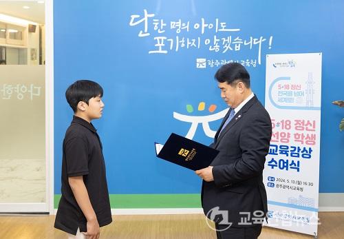 ½Ã±³À°Ã»Àº ÇØ´ç Çлý¿¡°Ô »óÀå°ú 5¡¤18 ±³À°ÀÚ·á ¡®²Ù·¯¹Ì¡¯¸¦ ÁõÁ¤ÇßÀ¸¸ç, ÇØ´ç Çб³¿¡µµ 5¡¤18 ±³À°ÀÚ·á¿Í ¿À¿ù±ÂÁî(ÁÖ¸Ô»§)À» º¸³¾ ¿¹Á¤ÀÌ´Ù.