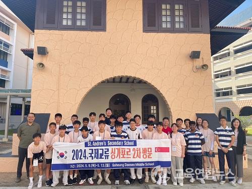 °íÈï´ë¼ÁßÇб³ ÇлýµéÀº St. Anderw¡¯s Secondary School¿¡ ¹æ¹®ÇÏ¿© ÇöÁö Çлýµé¿¡°Ô ´ëÇѹα¹°ú °íÈïÀ» ¾Ë¸®°í ¹®È¸¦ ±³·ùÇÏ´Â ½Ã°£À» °¡Á³´Ù.