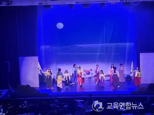 ÇлýµéÀÇ ³ë·Â°ú ¼ºÀå, °¨µ¶´ÔÀ» ºñ·ÔÇÑ Áöµµ±³»çÀÇ ¿­Á¤, Áö¿ª ¿ª»ç À̾߱⸦ Áß½ÉÀ¸·Î ÇÏ¿© Àü³²ÀÇ ÁøÁ¤ÇÑ ¿¹¼úÀÎÀ縦 À°¼ºÇϱâ À§ÇÑ ¿µ±¤±³À°Áö¿øÃ»ÀÇ Áö¿ø°ú Çå½Å, ÀÌ ¸ðµç °ÍÀÌ ÇÔ²² À¶È­µÇ¾î ´ëÇѹα¹ ±Û·ÎÄà ¹Ì·¡±³À°¹Ú¶÷ȸ Àå¿¡¼­ ¼ºÈ²¸®¿¡ ÆîÃÄÁø À̹ø °ø¿¬Àº Àü³²±³À°ÀÌ ÁöÇâÇÏ´Â ±Û·ÎÄà ¹Ì·¡±³À°ÀÇ ÁöÇâÁ¡À» º¸¿©Áֱ⿡ ÃæºÐÇÏ¿´´Ù.