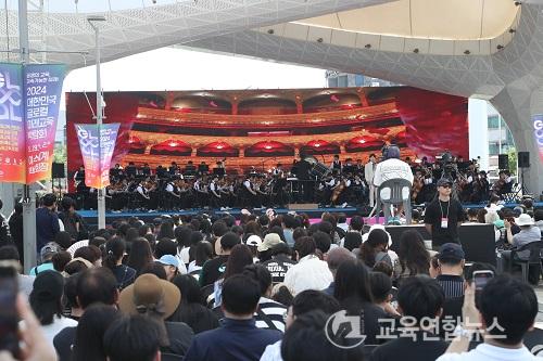5¿ù 31ÀÏ ¿ÀÈÄ ¿©¼ö¼¼°è¹Ú¶÷ȸÀå Á¤¹®±¤Àå ¹«´ë¿¡ ¼± ¡®°î¼º±º¸³ û¼Ò³â °üÇö¾Ç´Ü¡¯Àº 1½Ã°£ µ¿¾È ¹ÂÁöÄà ¹è¿ì 2¸í°ú ¸ÚÁø Çù¿¬À» ÆîÃÄ ±¤ÀåÀ» °¡µæ ¸Þ¿î °ü¶÷°´µéÀ» °¨µ¿½ÃÄ×´Ù.