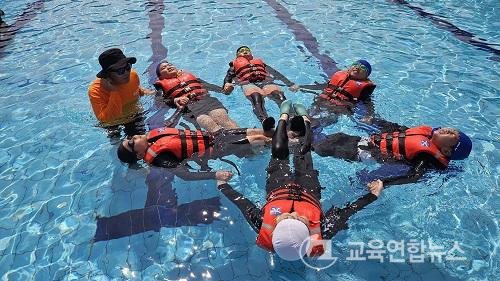 Ä·ÇÁ¿¡¼­ ÇлýµéÀº »ýÁ¸¼ö¿µ ±³À°°ú ÇÔ»óÅ»Ãâ ±³À° µîÀ» ¹Þ´Â´Ù. 3m ¼ö½É Ç®À» °®Ãá ±¤ÁÖÇлýÇØ¾ç¼ö·Ã¿øÀÇ ÇØ¾ç¾ÈÀüüÇè°üÀº ÇлýµéÀÌ ½ÇÁ¦ »óȲ°ú À¯»çÇÑ È¯°æÀ» üÇèÇÒ ¼ö ÀÖ¾î ¼ö¿µ ½Ç·Â°ú À§±â ´ëó ´É·ÂÀ» ÇÔ²² ±â¸¦ ¼ö ÀÖÀ» °ÍÀ¸·Î ±â´ëµÈ´Ù.