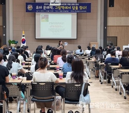 À̹ø ¿¬¼ö´Â ±×¸²Ã¥À» Ȱ¿ëÇÑ ¼ö¾÷À» ÅëÇØ À¯¾ÆÀÇ ¹®ÇØ·Â Çâ»óÀ» Áö¿øÇϱâ À§ÇØ¡®À¯¾Æ ¹®ÇØ·Â, ±×¸²Ã¥¿¡¼ ´äÀ» ã´Ù!¡¯¶ó´Â ÁÖÁ¦·Î (»ç)Çѱ¹±×¸²Ã¥¹®ÈÇùȸ ´ëÇ¥ÀÌÀÚ ±×¸²Ã¥±³À°¿¬±¸¼Ò ³ë¹Ì¼÷ ¼ÒÀåÀ» ÃÊûÇÏ¿© °ÀǸ¦ ¿î¿µÇß´Ù.