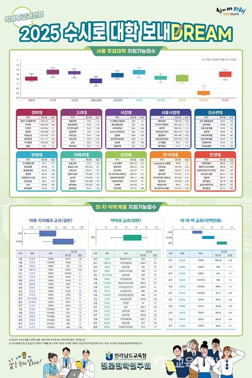 ¡®2025 ¼ö½Ã·Î ´ëÇÐ º¸³»DREAM¡¯Àº ´ëÇÐ °ø°³ ÀԽà °á°ú ÀÚ·á¿Í ÃàÀûµÈ ¿¬±¸È¸ ÀÚ·á µîÀÇ Åë°è ºÐ¼®À» ÅëÇØ ¼¿ï ÁÖ¿ä ´ëÇаú Àü³²´ëÇб³, ÀÇÄ¡ÇÐ°è¿ µî ÇÕ°Ý °¡´É µî±Þ°ú ±³°ú ȯ»ê Á¡¼ö¸¦ ¿¹ÃøÇß´Ù.
