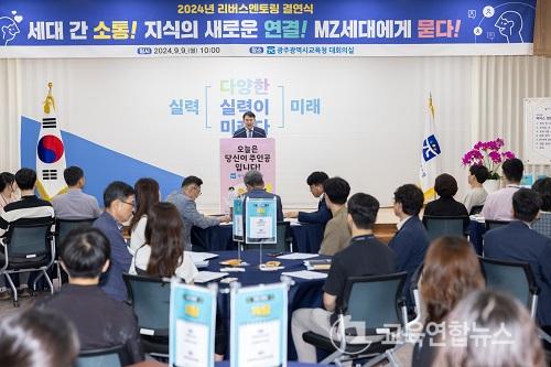 ÀÌÁ¤¼± ±³À°°¨Àº ¡°À̹ø ¸®¹ö½º ¸àÅ丵 °á¿¬½ÄÀÌ ¼¼´ë °£ º®À» Çã¹°°í, ´Ù¾çÇÑ ½Ã°¢¿¡¼ Á¶Á÷°ú ¾÷¹«¸¦ ¹Ù¶óº¸´Â ±âȸ°¡ µÇ±æ ¹Ù¶õ´Ù¡±¸ç ¡°¼¼´ë °£¿¡ »óÈ£ Á¸ÁßÇϰí Çù·ÂÇØ ±¤ÁÖ±³À°ÀÇ ¹Ì·¡¸¦ ¸¸µé¾î ³ª°¡ÀÚ¡±°í ¸»Çß´Ù.