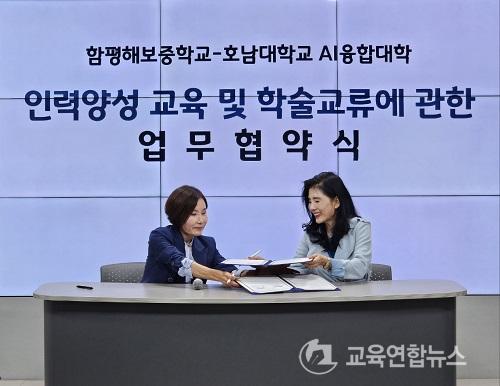 ¡¼ÇÔÆò=±³À°¿¬ÇÕ´º½º¡½¹Ú»ó¿õ ±âÀÚ= ÇÔÆòÇØº¸ÁßÇб³(±³Àå ±è¼º¾Ö)´Â Áö³ 10¿ù 21ÀÏ(¿ù) ¿ÀÈÄ 2½Ã È£³²´ëÇб³ IT ½ºÄù¾î 3Ãþ ÅëÇÕ´º½º¼¾ÅÍ¿¡¼ È£³²´ë AIÀ¶ÇÕ´ëÇаú AIÀÎÀç ¾ç¼ºÀ» À§ÇÑ ¾÷¹«Çù¾à(MOU)À» ü°áÇß´Ù.