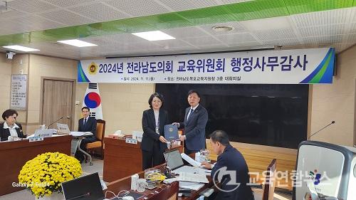 ¸ñÆ÷±³À°Áö¿øÃ»¿¡¼ ¿ÀÀü¿¡ ½Ç½ÃÇÑ ÇØ³², ÇÔÆò, ½Å¾È±³À°Áö¿øÃ»¿¡ ´ëÇÑ 2024³âµµ ÇàÁ¤»ç¹«°¨»ç¿¡¼ ÀÌÀÚ¿µ ÇØ³²±³À°ÀåÀÌ ´ëÇ¥¼±¼¸¦Çϰí ÁõÀμ±¼¹®À» ±èÁ¤ÈñÀ§¿øÀå¿¡°Ô Àü´ÞÇß´Ù.