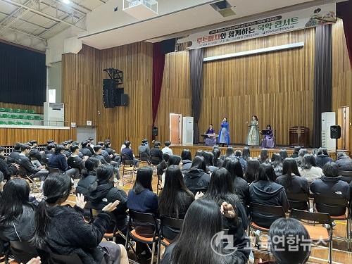 À̹ø »ç¾÷ÀÇ Ã¹ ½ÃÀÛÀΠâÆò°íµîÇб³ °ø¿¬¿¡ Âü¿©ÇÑ ÇÑ ÇлýÀº ¡°¿ì¸®¿¡°Ô Àͼ÷ÇÑ ¾Æ¸®¶ûºÎÅÍ ¿µÈ OST, K-Pop µîÀ» ±¹¾Ç±â¿Í ÆÇ¼Ò¸®·Î µéÀ» ¼ö ÀÖ¾î Æ¯º°ÇÑ ½Ã°£À̾ú°í, ¼ö´ÉÀ» ³¡³»°í ¸¶À½¿¡ ¿©À¯¸¦ °¡Áú ¼ö ÀÖ¾î¼ ÁÁ¾Ò´Ù.¡±°í ¼Ò°¨À» ¹àÇû´Ù.