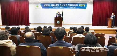 ¡¼±¤ÁÖ=±³À°¿¬ÇÕ´º½º¡½¹Ú»ó¿õ ±âÀÚ= ±¤ÁÖ´ëÇб³(ÃÑÀå ±èµ¿Áø)´Â 3ÀÏ ¿ÀÀü 11½Ã ±³³» È£½É°ü ¼Ò°´ç¿¡¼ ±³Á÷¿ø 250¿© ¸íÀÌ Âü¼®ÇÑ °¡¿îµ¥ ¡®2025³â Çб³¹ýÀΠȣ½ÉÇпø ±¤ÁÖ´ëÇб³ ½Ã¹«½Ä¡¯À» °³ÃÖÇß´Ù.