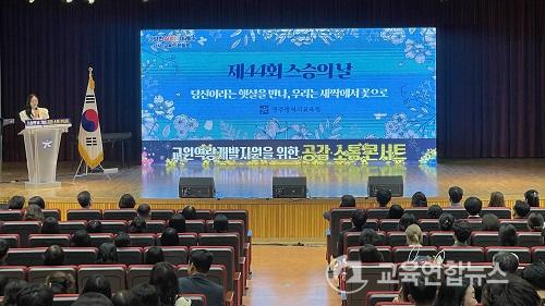 ÀÌÁ¤¼± ±³À°°¨Àº ¡°À̹ø Çà»ç°¡ Á¦44ȸ ½º½ÂÀÇ ³¯À» ±â³äÇϰí, ±³Á÷ÀÇ °¡Ä¡¸¦ ÀçÈ®ÀÎÇϰí ȸº¹Àû ¸®´õ½ÊÀ» ÇÔ²² °í¹ÎÇÏ´Â ¼ÒÁßÇÑ ÀÚ¸®°¡ µÇ±æ ¹Ù¶õ´Ù¡±¸ç ¡°¼±»ý´ÔµéÀÌ Àü¹®¼º°ú ÇູÀ» ÇÔ²² Ãß±¸ÇÒ ¼ö ÀÖµµ·Ï ´Ù¾çÇÑ Áö¿øÀ» ¾Æ³¢Áö ¾Ê°Ú´Ù¡±°í ¸»Çß´Ù.