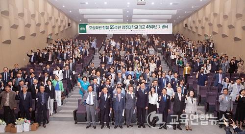 ¡¼±¤ÁÖ=±³À°¿¬ÇÕ´º½º¡½¹Ú»ó¿õ ±âÀÚ= Çб³¹ýÀΠȣ½ÉÇпø â¼³ 55ÁÖ³â ¹× ±¤ÁÖ´ëÇб³ °³±³ 45Áֳ⠱â³ä½ÄÀÌ 12ÀÏ ±¤ÁÖ´ëÇб³ È£½É°ü 1Ãþ ´ë°­´ç¿¡¼­ ¼ºÈ²¸®¿¡ °³ÃֵƴÙ.