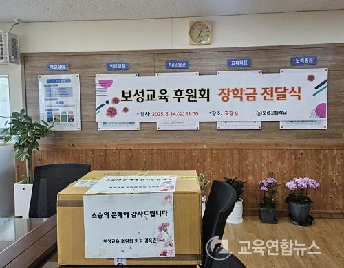 ¡¼º¸¼º=±³À°¿¬ÇÕ´º½º¡½¹Ú»ó¿õ ±âÀÚ = º¸¼º°íµîÇб³(±³Àå ±è¹®ÁÖ)´Â 5¿ù14ÀÏ ½º½ÂÀÇ ³¯À» ¸Â¾Æ º¸¼º±³À°ÈÄ¿øÈ¸ Çб³¹ßÀü±â±Ý Àü´Þ½ÄÀ» °¡Á³´Ù.