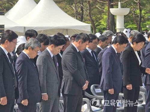¡¼±¤ÁÖ=±³À°¿¬ÇÕ´º½º¡½¹Ú»ó¿õ ±âÀÚ= ÀÌÁ¤¼± ±³À°°¨ÀÌ 18ÀÏ ¿ÀÀü 10½Ã, ±¹¸³5¡¤18¹ÎÁÖ¹¦Áö¿¡¼ ¿¸° Á¦45ÁÖ³â 5¡¤18¹ÎÁÖȿ ±â³ä½Ä¿¡ Âü¼®ÇÏ¿© ¿À¿ù ¿µ·ÉÀ» Ã߸ðÇϰí, ¹ÎÁÖ¡¤Àαǡ¤ÆòÈÀÇ 5¡¤18Á¤½Å °è½ÂÀ» ´ÙÁüÇß´Ù.