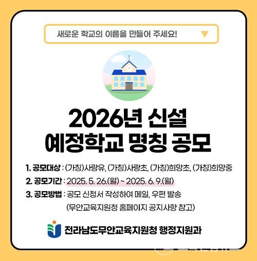 ¹«¾È±³À°Áö¿øÃ», 2026³â ½Å¼³ ¿¹Á¤ Çб³ ±³¸í °ø¸ð