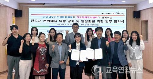 ¡¼Áøµµ=±³À°¿¬ÇÕ´º½º¡½¹Ú»ó¿õ ±âÀÚ= Àü¶ó³²µµÁøµµ±³À°Áö¿øÃ»(±³À°Àå ±è ¹Ì)Àº 6¿ù 11ÀÏ(¼ö) ¿ÀÀü 11½Ã, Áøµµ±º¹®È­µµ½Ã¼¾ÅÍ(¼¾ÅÍÀå Çã °Ç)¿Í Áøµµ±ºÀÇ ¹®È­¿¹¼ú ¿ª·® °­È­ ¹× Ȱ¼ºÈ­¸¦ À§ÇÑ ¾÷¹« Çù¾àÀ» ¸Î¾ú´Ù.