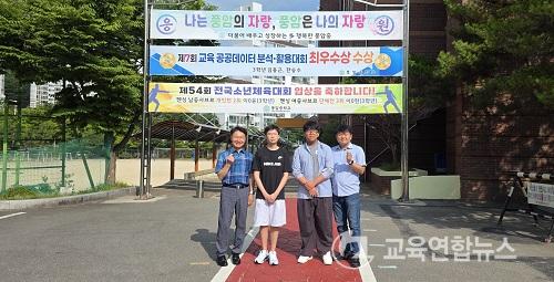 Çѽ¼ö(°¡¿îµ¥ ¿ÞÂÊ), ±èµ¿±Ù(°¡¿îµ¥ ¿À¸¥ÂÊ)ÀÌ Á¦7ȸ ±³À° °øµ¿µ¥ÀÌÅÍ ºÐ¼®¡¤È°µ¿ ´ëȸ¿¡¼­ ÃÖ¿ì¼ö»óÀ¸·Î ¼±Á¤µÈ ÀÌÈÄ Ç³¾ÏÁß ±³Á¤¿¡¼­ ±â³ä»çÁøÀ» ÃÔ¿µÇϰí ÀÖ´Ù. / ±¤Áֽñ³À°Ã» Á¦°ø