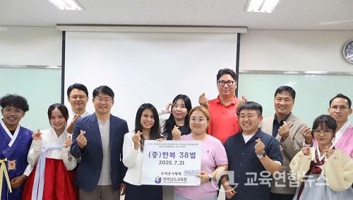 21ÀÏ ¿Õ¸³ ÇÁ³ðÆæ´ëÇб³¿¡¼­ ¿­¸° ÇѺ¹ ±âÁõ½ÄÀº Àü³²±³À°Ã»°ú ÀüÅëÇѺ¹ Á¦ÀÛ ´Üü ¡®¿ì¸®¿Ê»ç¶ûȸ¡¯ÀÇ Çù·ÂÀ¸·Î ÁøÇàµÆÀ¸¸ç, ȣġ¹Î½ÃÇѱ¹±³À°¿øÀÌ Çѱ¹ ¹®È­ È®»êÀ» À§ÇØ ÇѺ¹À» º¸°üÇÒ ¼ö ÀÖ´Â Àü¿ë Àåµµ ÇÔ²² Àü´ÞÇß´Ù.