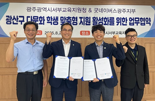 À̼ºÃ¶ ±¤ÁÖ¼ºÎ±³À°Áö¿øÃ» ±³À°ÀåÀº ¡°À̹ø Çù¾àÀ» ÅëÇØ ±¤»ê±¸Áö¿ª ´Ù¹®È ÇлýµéÀÌ µû¶æÇÑ ¿ïŸ¸® ¾È¿¡¼ ´õ Å« ²ÞÀ» Ű¿ì±æ ¹Ù¶õ´Ù¡±¸ç ¡°Áö¿ª»çȸ¿Í Àû±Ø Çù·ÂÇØ ´Ù¹®È ÇлýµéÀÇ ´Ù¾ç¼ºÀÌ Á¸Áß¹Þ´Â ±³À°È¯°æÀÌ Á¶¼ºµÇµµ·Ï ÃÖ¼±À» ´ÙÇϰڴ١±°í ¸»Çß´Ù.