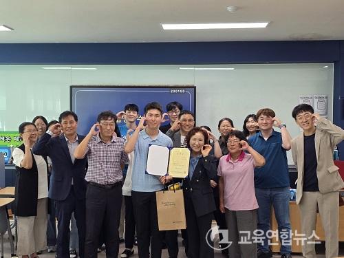Á¶¿¬ÁÖ ±³À°ÀåÀÌ Çб³ ÇöÀåÀ» ã¾Æ ÀÓ¸íÀå ¼ö¿©Çϰí ÀÖ´Ù. (È­»êÃʵîÇб³ ±è°Ç ½Å±Ô±³»ç)