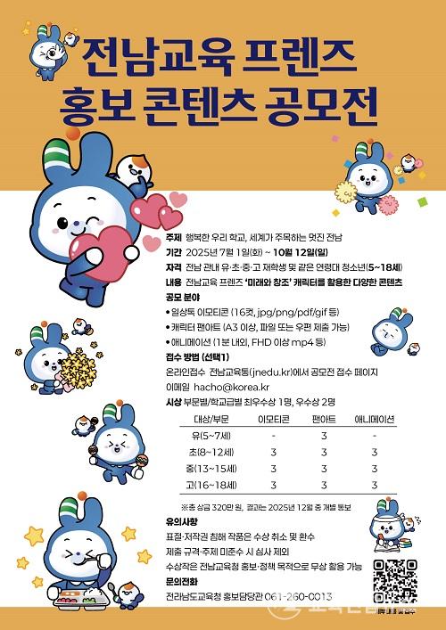 ¡¼¹«¾È=±³À°¿¬ÇÕ´º½º¡½¹Ú»ó¿õ ±âÀÚ= Àü¶ó³²µµ±³À°Ã»(±³À°°¨ ±è´ëÁß)ÀÌ ¿À´Â10¿ù 12ÀϱîÁö Àü³² °ü³» ¾î¸°ÀÌ․û¼Ò³âÀ» ´ë»óÀ¸·Î ¡®Àü³²±³À° ÇÁ·»Áî È«º¸ ÄÜÅÙÃ÷ °ø¸ðÀü¡¯À» ¿î¿µÇÑ´Ù.