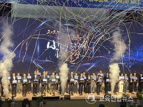 À̳¯ Çà»ç´Â ½Ä¼ø¿¡ ÀÌ¾î ±â³äÃÔ¿µ, ±è´ëÁß±³À°°¨ Àλ縻, ½ÅÁ¤ÈƱ¹È¸ÀÇ¿øÀÇ Ãà»ç, À±º´Å ³ªÁÖ½ÃÀå Ãà»ç¸¦ ºñ·ÔÇÑ °¢°è Àλç Ãà»ç, º¯Á¤ºó±³À°ÀåÀÇ ¡¸2025 ³ªÁÖ±³À° ºò¹ð ÇÁ·ÎÁ§Æ®¡¹¼³¸í, ±³À°¹ßÀüƯ±¸ ¿î¿µ ¹æÇâµµ ¹ßÇ¥, ¸¶Áö¸·À¸·Î ¼¸í½ÄÀ» ³¡À¸·Î¡¸2025 ³ªÁÖ±³À° ºò¹ð ÇÁ·ÎÁ§Æ®¡¹¼±Æ÷½ÄÀÌ ¸·À» ³»·È´Ù.