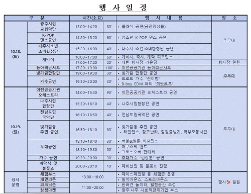 µÑ° ³¯ÀÎ 19ÀÏ¿¡´Â ÀÌÀü °ø°ø±â°ü ¿ÀÄɽºÆ®¶ó, ³ªÁֽø³ÇÕâ´Ü, Àü³²µµ¸³±¹¾Ç´Ü °ø¿¬°ú ÇÔ²² ºû°¡¶÷µ¿ ÁֹεéÀÌ Âü¿©ÇÏ´Â À屸³­Å¸¡¤¶óÀÎ´í½º¡¤Áٳѱ⠰ø¿¬ÀÌ ÆîÃÄÁø´Ù.