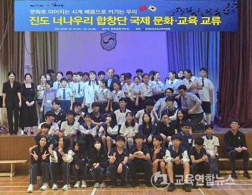 È«Äá±¹Á¦Çб³¿Í ±³·ù Ȱµ¿ ÈÄ ÁøµµÃʵîÇб³ À̤·¤· ÇлýÀº ¡°°ø¿¬À» ÇÔ²² ÁغñÇÏ°í ´Ù¸¥ ³ª¶ó Ä£±¸µé°ú ÀüÅ빮ȸ¦ ³ª´©¸ç, ¿ì¸® ¹®ÈÀÇ ÀںνÉÀ» ´À³¥ ¼ö ÀÖ¾ú´Ù¡±¸ç ¡°¼±¹°À» ÁÖ°í¹ÞÀ¸¸ç ÀÚ¿¬½º·´°Ô ¸¶À½ÀÌ À̾îÁ³°í, ¿À·¡µµ·Ï ±â¾ï¿¡ ³²À» ¼ÒÁßÇÑ Ãß¾ïÀÌ µÇ¾ú´Ù¡±¶ó°í ¼Ò°¨À» ÀüÇß´Ù.
