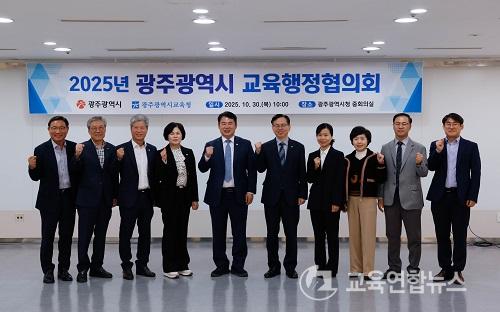 ÀÌÁ¤¼± ±¤Áֽñ³À°°¨(¿ÞÂÊ 5¹øÂ°)ÀÌ 30ÀÏ ±¤ÁÖ½Ãû ÁßȸÀǽǿ¡¼­ ÁøÇàÇÑ ¡®2025³â ±¤ÁÖ±¤¿ª½Ã ±³À°ÇàÁ¤ÇùÀÇȸ¡¯¿¡¼­ °í±¤¿Ï ±¤Áֽà ºÎ½ÃÀå µî °ü°èÀÚ¿Í ÇÔ²² ±â³ä»çÁøÀ» ÃÔ¿µÇϰí ÀÖ´Ù. / ±¤Áֽñ³À°Ã» Á¦°ø