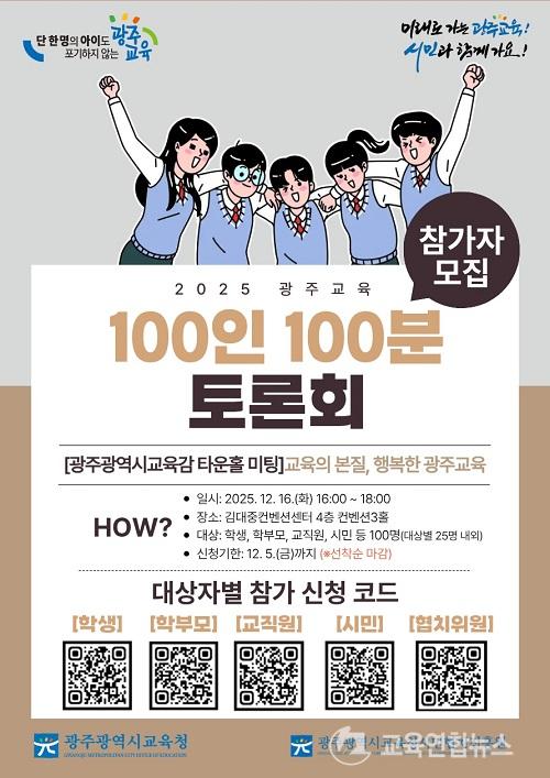 ¡¼±¤ÁÖ=±³À°¿¬ÇÕ´º½º¡½¹Ú»ó¿õ ±âÀÚ= ±¤Áֽñ³À°Ã»½Ã¹ÎÇùÄ¡ÁøÈï¿ø(ÀÌÇÏ ½Ã¹ÎÇùÄ¡ÁøÈï¿ø)Àº ¿À´Â 12¿ù 16ÀÏ ±è´ëÁßÄÁº¥¼Ç¼¾ÅÍ 4Ãþ ÄÁº¥¼ÇȦ¿¡¼ ¡®2025 ±¤ÁÖ±³À° 100ÀÎ 100ºÐ Åä·Ðȸ¡¯¸¦ °³ÃÖÇÑ´Ù.