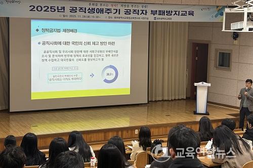 ¡¼±¤ÁÖ=±³À°¿¬ÇÕ´º½º¡½¹Ú»ó¿õ ±âÀÚ= ±¤Áֽñ³À°Ã»(±³À°°¨ ÀÌÁ¤¼±)Àº 28ÀÏ ±¤Áֽñ³À°Ã»±³À°¿¬¼ö¿ø ½Ãû°¢½Ç¿¡¼ ¡®°øÁ÷»ý¾ÖÁֱ⠰øÁ÷ÀÚ ºÎÆÐ¹æÁö±³À°¡¯À» ½Ç½ÃÇß´Ù.