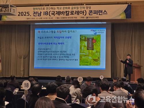 ±è¿µ±æ ±Û·ÎÄù̷¡±³À°°úÀåÀº ¡°IB ÇÁ·Î±×·¥ ¿î¿µÀ» À§Çؼ´Â Çù·ÂÀûÀ¸·Î ¿¬±¸ÇÏ´Â Çб³ ¹®È Á¶¼ºÀÌ Áß¿äÇÏ´Ù.¡±¸ç ¡°Àü³² Áö¿ª IB ¿î¿µ Çб³»Ó ¾Æ´Ï¶ó ÀÏ¹Ý Çб³¿¡¼µµ Çлý ¼ºÀå Áß½ÉÀÇ ¼ö¾÷ Çõ½ÅÀ» À§ÇÑ Çù·ÂÀûÀ¸·Î ¿¬±¸ÇÏ´Â Çб³¹®È°¡ È®»êµÇ±â¸¦ ±â´ëÇÑ´Ù¡±°í ¸»Çß´Ù.