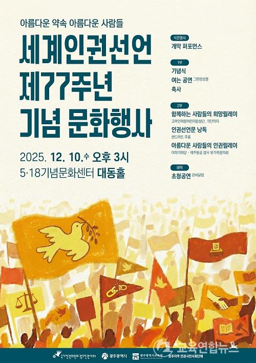 ¡¼±¤ÁÖ=±³À°¿¬ÇÕ´º½º¡½¹Ú»ó¿õ ±âÀÚ= ±¤Áֽñ³À°Ã»(±³À°°¨ ÀÌÁ¤¼±)ÀÌ ¼¼°èÀαǼ±¾ð 77ÁÖ³âÀ» ¸Â¾Æ ±¤ÁÖ±¤¿ª½Ã, ±¹°¡ÀαÇÀ§¿øÈ¸ ±¤ÁÖÀαǻ繫¼Ò¿Í ¡®¼¼°èÀαǼ±¾ð ±â³äÁÖ°£¡¯À» ¿î¿µÇÑ´Ù.