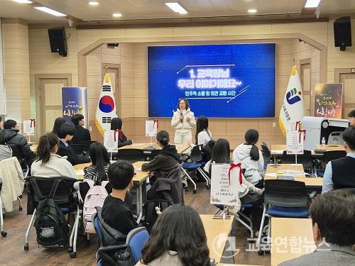 ƯÈ÷ ¡®±³À°Àå´Ô! ¿ì¸® À̾߱âÇØ¿ä¡¯ ½Ã°£¿¡´Â ÇлýµéÀÌ º¯Á¤ºó ±³À°Àå°ú Á÷Á¢ ¼ÒÅëÇϸç Çб³ ÇöÀå¿¡¼ ÇÊ¿äÇÑ Áö¿ø°ú °³¼± ÀǰßÀ» Á¦¾ÈÇß´Ù. ÀÌ ÀÚ¸®¿¡¼ 2026³â ÃßÁø ¿¹Á¤ÀÎ ³ªÁÖû¼Ò³ââ¾÷Çб³ °èȹµµ ¾È³»µÅ ÇлýµéÀÇ °ü½ÉÀ» ²ø¾ú´Ù.