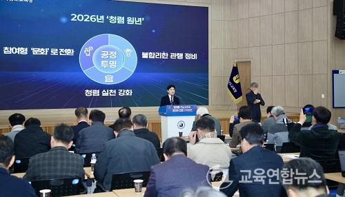 ƯÈ÷, Àü³²±³À°Ã»Àº ÀÌ·¯ÇÑ º¯È¿Í µµÀüÀÌ ÇöÀå¿¡ »Ñ¸®³»¸®±â À§Çؼ´Â ¹«¾ùº¸´Ù û·ÅÀÌ µÞ¹ÞħµÅ¾ß ÇÑ´Ù´Â Á¡À» ºÐ¸íÈ÷ Çß´Ù. ÀÌ¿¡, 2026³âÀ» ¡®Ã»·Å ¿ø³â¡¯À¸·Î »ï°í, Á¤Ã¥ ¼ö¸³ºÎÅÍ ¿¹»ê ÁýÇà, Àλç¿Í ÇàÁ¤ Àü¹Ý¿¡ À̸£±â±îÁö °øÁ¤°ú Åõ¸íÀ» ÇàÁ¤ÀÇ Àý´ë ±âÁØÀ¸·Î »ï°Ú´Ù´Â ¹æÄ§ÀÌ´Ù.