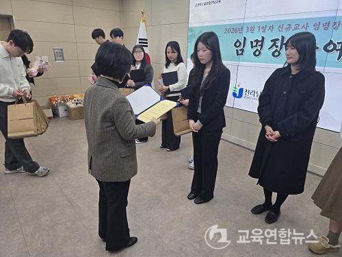 À̹ø ÀÓ¸íÀå ¼ö¿©½ÄÀº 2026³â 3¿ù 1ÀÏÀÚ·Î ¹«¾È Áö¿ª Çб³¿¡ ù ¹ß·ÉÀ» ¹ÞÀº ½Å±Ô±³»çµéÀ» ÃàÇÏÇÏ°í ±³Á÷ »ýȰÀÇ Ãâ¹ßÀ» ÀÀ¿øÇϱâ À§ÇØ ¸¶·ÃµÇ¾ú´Ù. Çà»ç¿¡´Â À¯Ä¡¿ø¡¤ÃʵîÇб³¡¤ÁßÇб³ ½Å±Ô±³»ç 36¸íÀÌ Âü¼®ÇØ ±³À°°ø¹«¿øÀ¸·Î¼ÀÇ Ã¥ÀÓ°ú »ç¸íÀ» µÇ»õ±â°í, Çлýµé°ú ÇÔ²² ¼ºÀåÇÏ´Â ±³»ç°¡ µÇ°Ú´Ù´Â ´ÙÁüÀ» ³ª´©¾ú´Ù.