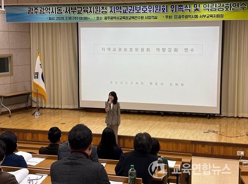 ±¤ÁÖµ¿ºÎ±³À°Áö¿øÃ» À̸í¼÷ ±³À°ÀåÀº ¡°±³±Çº¸È£À§¿øÈ¸´Â ±³¿øÀÇ ±³À°È°µ¿À» ½ÇÁúÀûÀ¸·Î º¸È£ÇÏ°í ±³À°°øµ¿Ã¼ÀÇ ½Å·Ú¸¦ ȸº¹Çϱâ À§ÇÑ ÇÙ½ÉÀûÀÎ Á¦µµÀû ÀåÄ¡¡±¶ó¸ç ¡°À§¿øµéÀÇ Àü¹®¼º Çâ»óÀ» ÅëÇØ ±³À°È°µ¿ º¸È£ÀÇ ½ÇÈ¿¼ºÀ» ³ôÀ̰ڴ١±°í ¸»Çß´Ù.