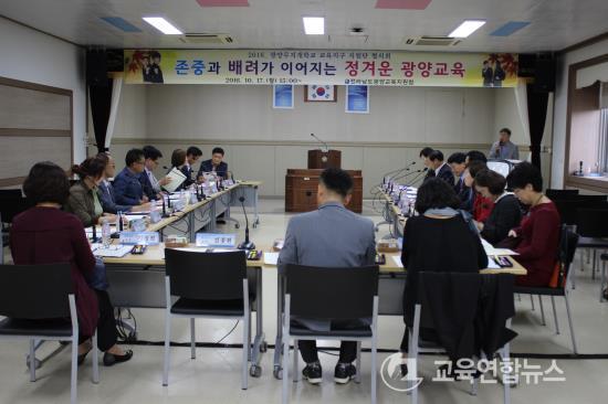 ¡¼±¤¾ç=±³À°¿¬ÇÕ´º½º¡½¹Ú»ó¿õ ±âÀÚ= Àü¶ó³²µµ±¤¾ç±³À°Áö¿øÃ»(±³À°Àå ÀÓ¿øÀç)Àº Áö³ 17ÀÏ(¿ù), ´ëȸÀǽǿ¡¼ ±¤¾ç¹«Áö°³Çб³ ±³À°Áö±¸ Áö¿ø´Ü 20¸íÀÌ Âü¼®ÇÑ °¡¿îµ¥ ÇùÀÇȸ¸¦ °³ÃÖÇß´Ù°í ¹àÇû´Ù.
