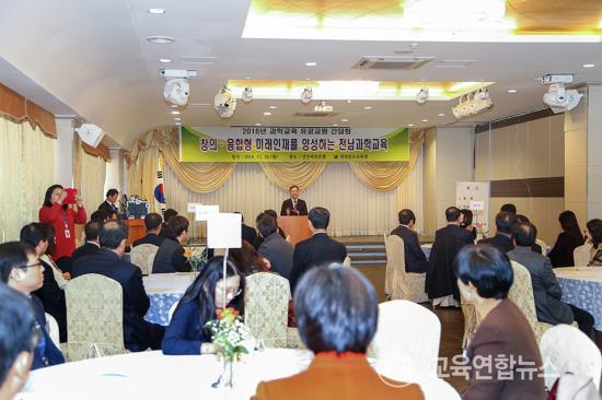 Àü³²µµ±³À°Ã»(±³À°°¨ À常ä)Àº 28ÀÏ ¸ñÆ÷ ½Å¾ÈºñġȣÅÚ¿¡¼­ ¿ÃÇØ °úÇб³À° °ü·Ã Àü±¹ ±Ô¸ð °¢Á¾ ´ëȸ¿¡¼­ ¶Ù¾î³­ ¼ºÀûÀ» °ÅµÐ ±³¿ø°ú °ü°èÀÚ µî 60¿©¸íÀÌ Âü°¡ÇÑ °¡¿îµ¥ ¡®2016. °úÇб³À° À¯°ø±³¿ø °£´ãȸ¡¯¸¦ °¡Á³´Ù.