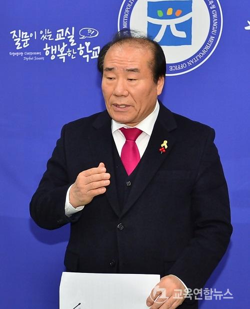 ÀåÈÖ±¹ ±¤Áֽñ³À°°¨Àº 31ÀÏ ¿ÀÀü ½Ã±³À°Ã» ºê¸®ÇÎ ·ë¿¡¼ ±âÀÚȸ°ßÀ» °®°í "±³À°ºÎÀÇ ¿ª»ç±³°ú¼ ÃÖÁ¾º» ¹ßÇ¥¸¦ º¸°í ÃÊ,Áß,°í ±³À°À» Ã¥ÀÓÁö°í ÀÖ´Â ±³À°°¨À¸·Î¼ ¸Å¿ì ¾ÈŸ±õ°í ÅëźÇÏÁö ¾ÊÀ» ¼ö ¾ø´Ù"¸é¼ "±¹Á¤±³°ú¼ »ç¿ëÀÇ ¹ßÆÇÀ» ¸¸µé¾îÁÖ´Â ¿¬±¸Çб³ ÁöÁ¤¿¡ ÇùÁ¶ ¹× ´ëÇà ¾÷¹«¸¦ ÇÏÁö ¾Ê°Ú´Ù"°í ¹àÇû´Ù.