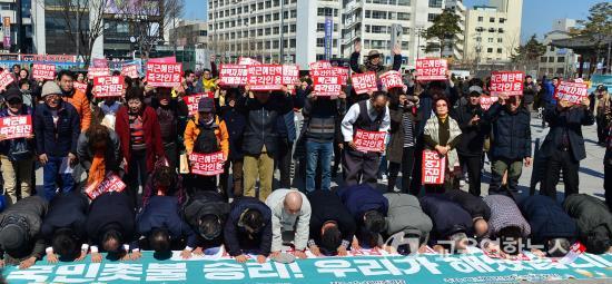 ÀÌ¿¡ ´ëÇØ ÀåÈÖ±¹±³À°°¨Àº 10ÀÏ ¡°±¹¹ÎÀÌ ½Â¸®Çß½À´Ï´Ù. Çå¹ýÀçÆÇ¼Ò°¡ ¿À´Ã ¹Ú±ÙÇý ´ëÅë·É źÇÙ¼ÒÃß¾ÈÀ» ÀοëÇß½À´Ï´Ù. Çå¹ýÀçÆÇ¼Ò 8¸íÀÇ ÀçÆÇ°üµé¿¡°Ô Á¸°æ°ú °¨»çÀÇ ¹Ú¼ö¸¦ º¸³½´Ù¡±°í ¹Ú±ÙÇý´ëÅë·É źÇÙÀο뿡 ´ëÇÑ ÀÔÀåÀ» ¹ßÇ¥Çß´Ù.