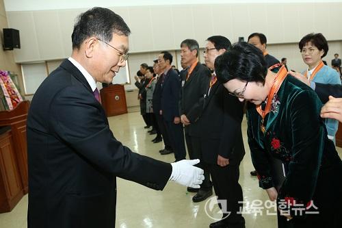 À常ä ±³À°°¨Àº ¡°¿µ¿¹·Î¿î ÅðÀÓÀ» ¸ÂÀÌÇÑ ¼ö»óÀÚ¿Í °¡Á·µé¿¡°Ô ±×µ¿¾ÈÀÇ Çå½Å°ú ³ë°í¿¡ °Ý·Á¿Í °¨»çÀÇ ¸¶À½À» ÀüÇÑ´Ù¡±¸ç, ¡°¾ÕÀ¸·Îµµ Àü³²±³À°ÀÇ ¹ßÀüÀ̶ó´Â ½Ã´ëÀû ¼Ò¸í¿¡ ¼±¹è ±³À°ÀÚµéÀÇ °æ·û°ú ÁöÇý¸¦ º¸ÅÂÁÙ °Í¡±À» ´çºÎÇß´Ù.