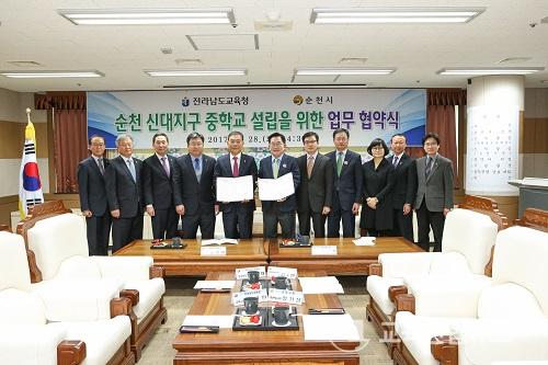 Àü³²µµ±³À°Ã», ¼øÃµ ½Å´ëÁö±¸ ÁßÇб³ ¼³¸³À» À§ÇÑ ¾÷¹« Çù¾à ü°á ¼øÃµ»ï»êÁßÇб³ À̼³ ÃßÁø ź·Â ¹Þ¾Æ... |